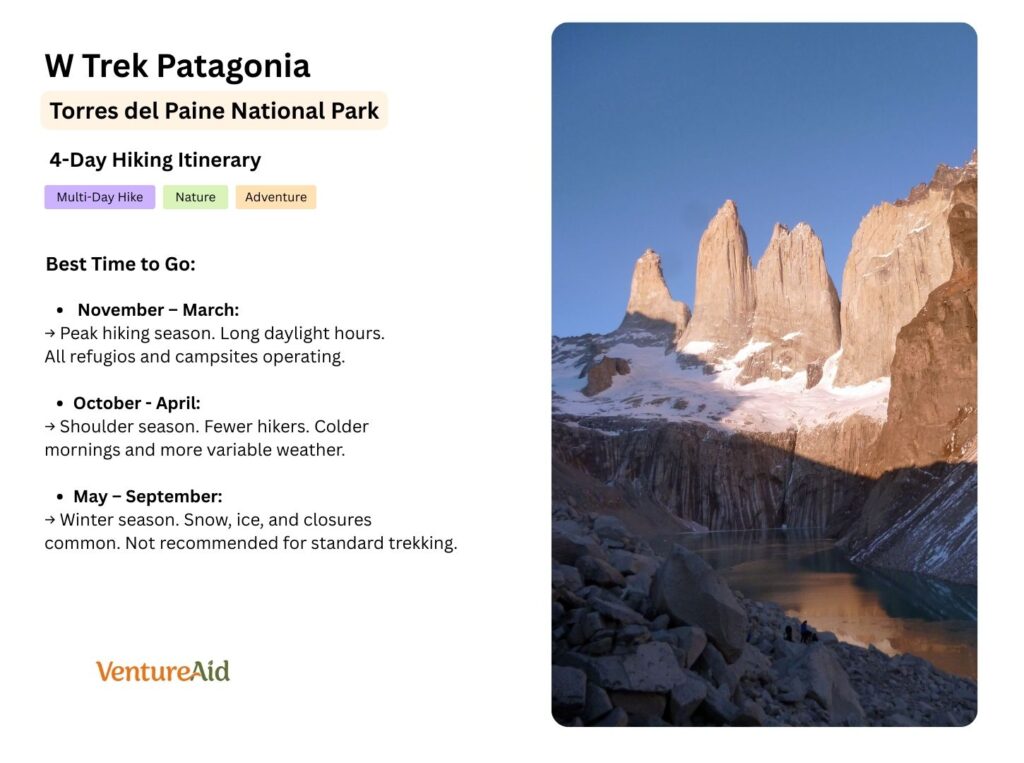 The W Trek is more than a hike — it’s an immersion into Patagonia’s raw landscapes. I completed this 4-day route through Torres del Paine National Park, covering the Towers Base hike, Valle Francés, and Grey Glacier. This guide combines my actual stages, distances, and practical planning details to help you prepare for your own W Trek with clarity and confidence.